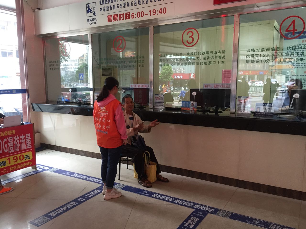 5月7日11时,一名年迈且步履蹒跚的老先生满头大汗地在售票窗口不停比划,情绪非常激动。